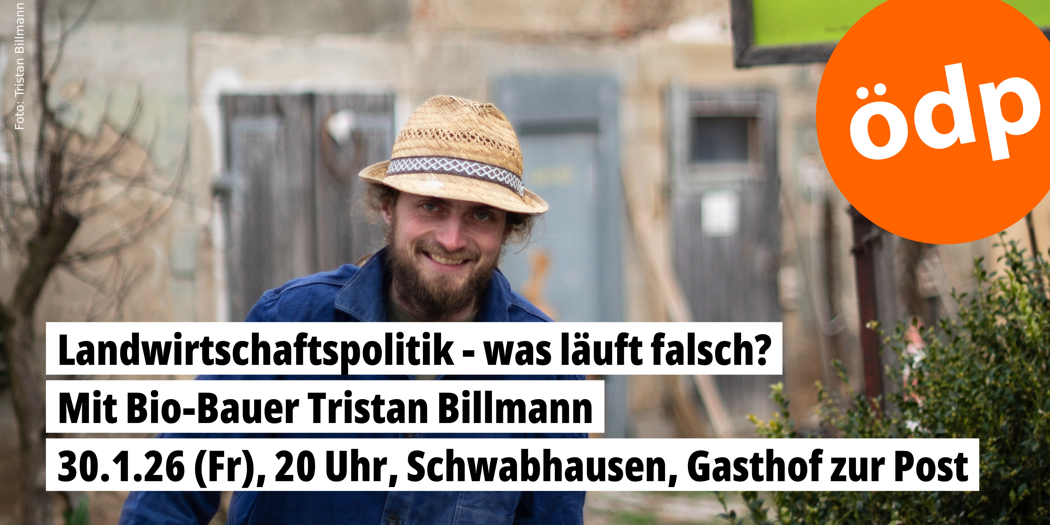 Vortrag mit Bio-Bauer Tristan Billmann, Mitglied des ÖDP Landesvorstands
